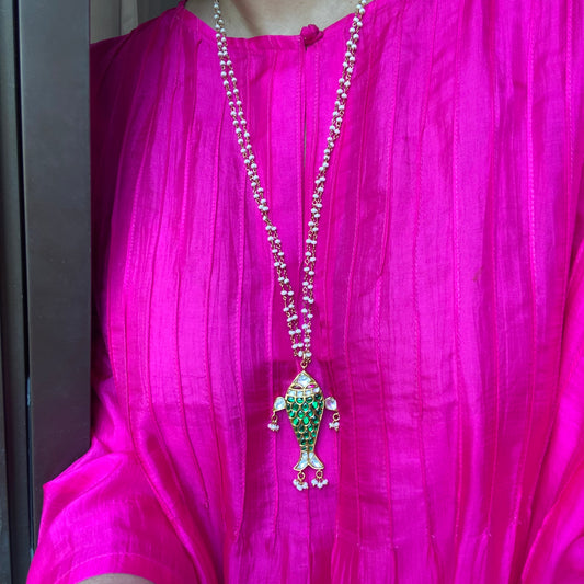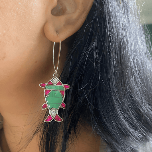 Matsya Leaf Hook Earring (Pink + Turquoise)